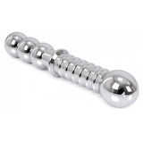 Ce double gode en métal est un sextoy idéal pour varier les sensations. En effet, il est composé de : une partie de 10cm de longueur insérable avec une surface nervurée. Boule de départ de 3.5cm de largeur puis 2.5cm de largeur l'autre partie de 8cm de longueur insérable avec 3 boules de 2.8cm de largeur. Longueur totale de 19cm