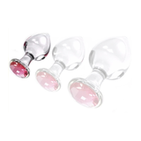 Le plug en verre Diamond Glassy est composé avec une longueur insérable de 7.5cm et une largeur maximale de 3.4cm. Avec une surface lisse et un bijou rose. Matière résistante