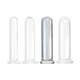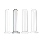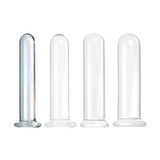 Plug en forme de tube aux bords arrondis. Longueur insérable de 12 cm et largeur de 2 cm. Base fine élargie. En verre transparent.